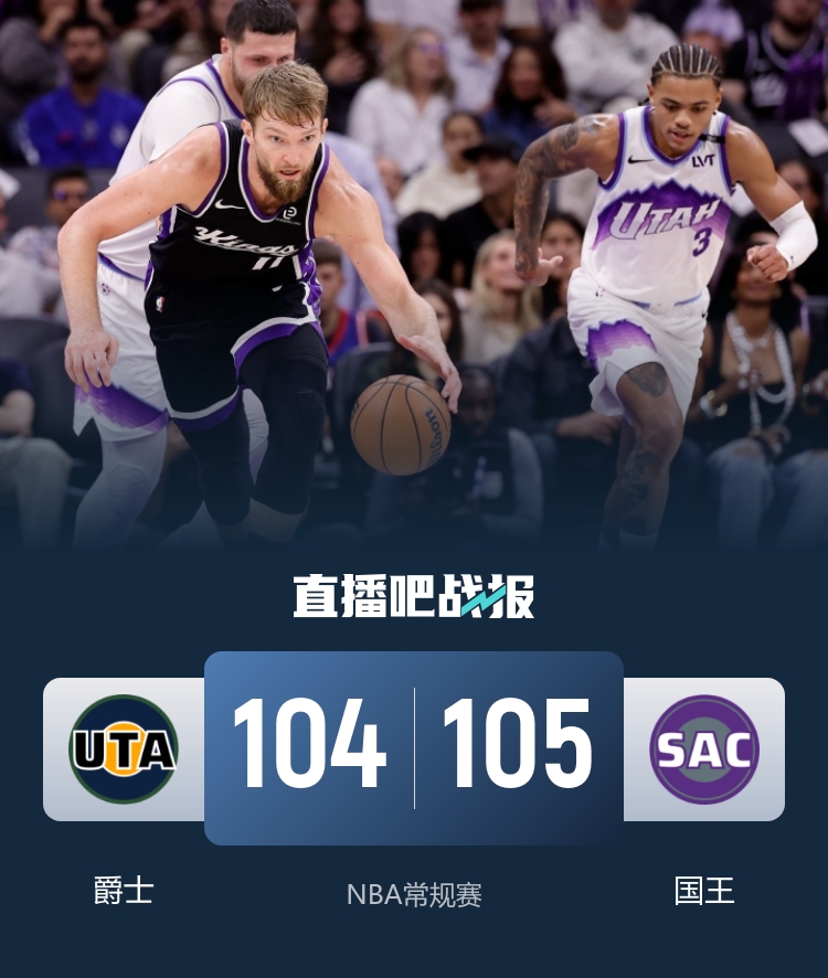 国王险胜爵士 小萨赛季首秀关键补篮2+0 拉文31分 马卡33分